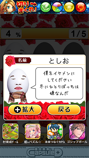 リアルな卵男が、だんだんイケメンに!薔薇を収穫し、キス練し、彼女ゲットをめざしてイケメン顔に育てよう〜「真冬の育ててイケメン」無料♪
