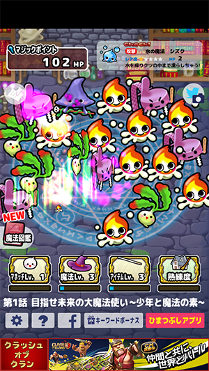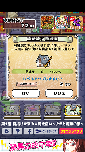 かけだし魔法使いの少年が魔法を集める放置ゲームだよ〜