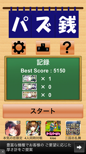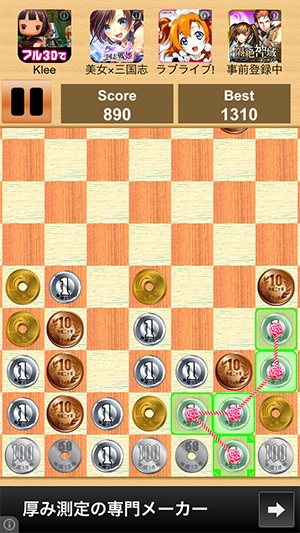 小銭やお札をつなげて両替するパズルゲームだよ〜