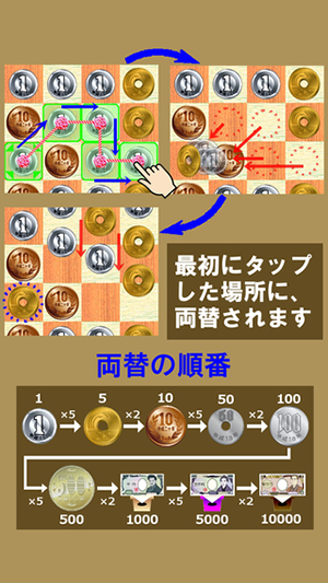 つなげて消すのではなく、両替で大きなお金を目指すところ!