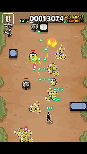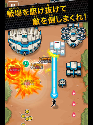 陸と空から攻めてくる敵を爽快に爆破できるよ〜
