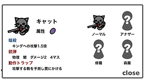 動物キャラごとに”属性”があって、相手との相性があるよ。