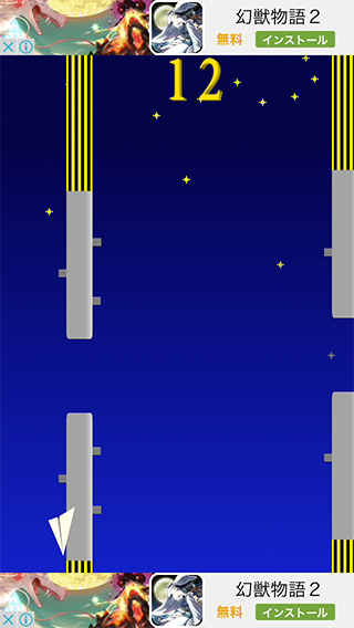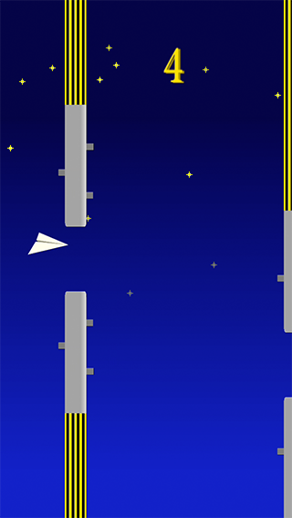 紙飛行機を操って障害物のすき間を通って飛ぶ、シンプルアクションゲームだよ〜
