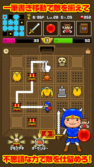 基本操作は全てタップだけど、”一筆書き”で同種類の敵をそろえると一撃で倒せるよ!
