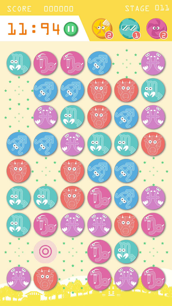 連続タップで、まとめて弾けるのが気持ちいい!十二宮の星座を捕らえる、20秒勝負の楽しい、早押しアクション「Zing Zong」無料♪