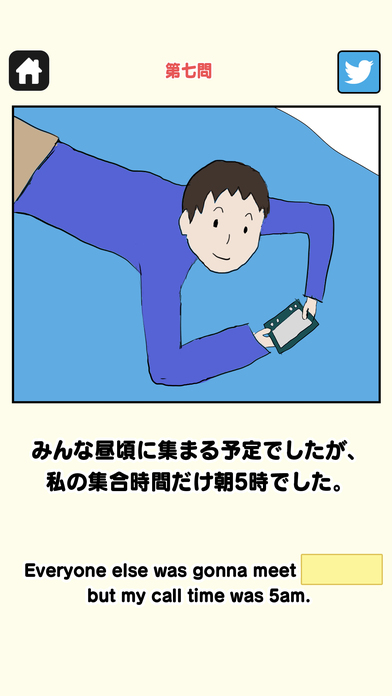 思わずニヤっとしてしまう楽しい例文が楽しい、気軽に英文に親しめる英語クイズゲーム。