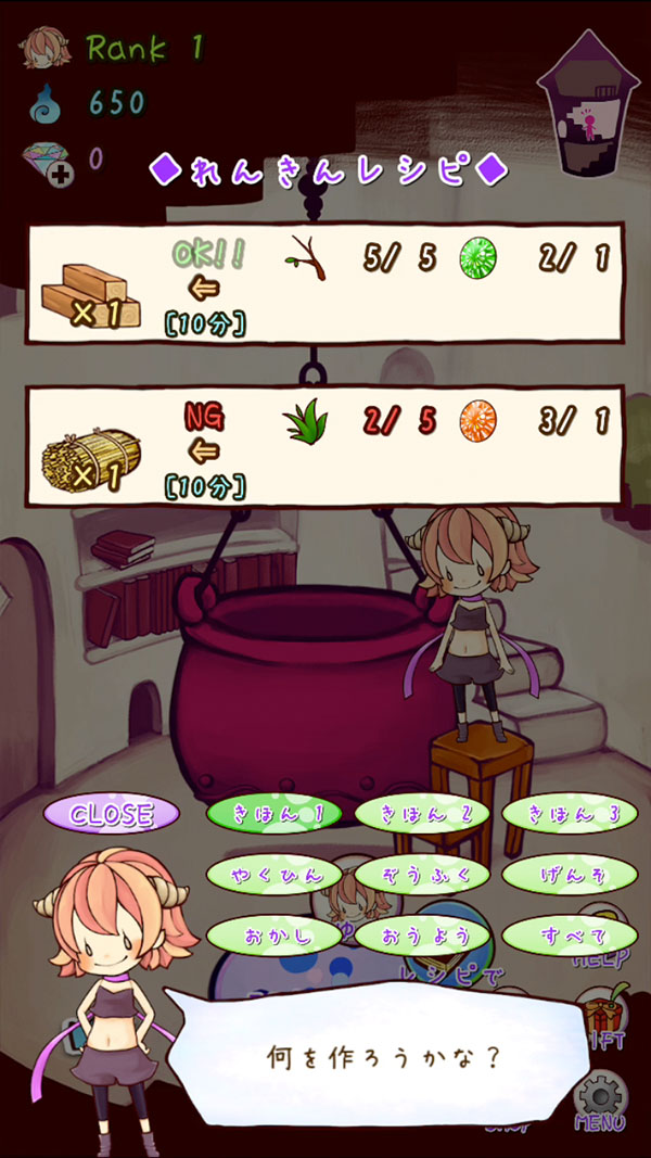 素材をお鍋に入たら、錬金術で新しい物が作れちゃうよ〜