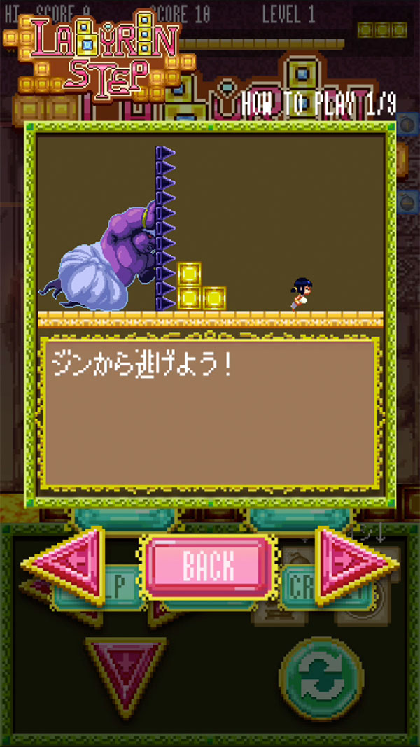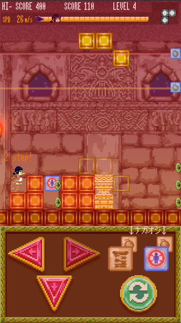 障害物やジャマ者をよけながら、りんごやコインを集めて、できるだけ遠くまで逃げるよ〜