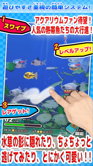 魚を収集していくとレベルが上って、出現スピードを早くしたり、レアな魚の出現率を上げたりできるよ。