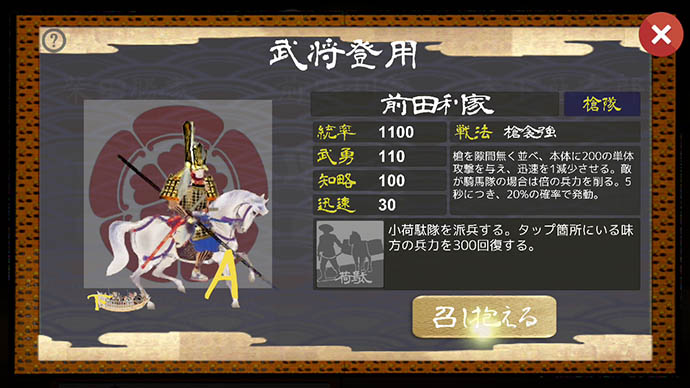 武将は、スキルをもっていて、武力に優れていたり、知力が高かったり、個性があるから、誰をゲットするか悩むよ〜