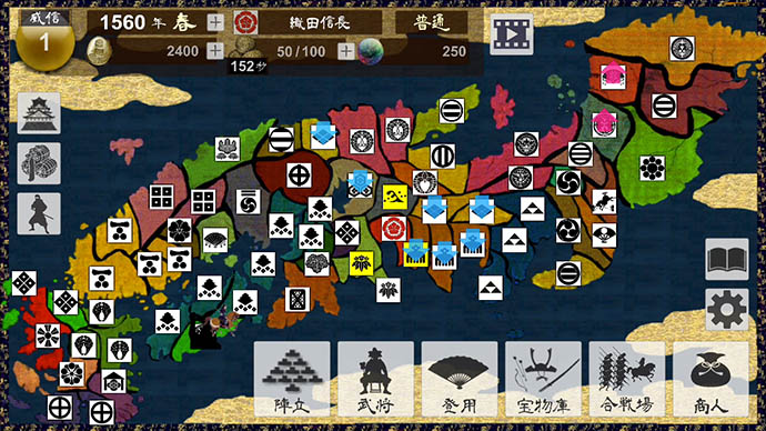 時は戦国時代、プレイヤーは「織田信長」となって、天下統一(全国制覇)を目指すよ〜