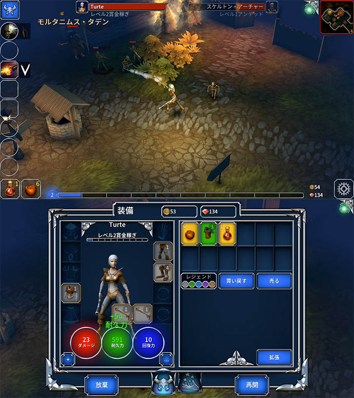 上から見た視点で、タップで移動と攻撃をして、簡単な記号を描くと特殊能力(アビリティ)が発動するんだね〜