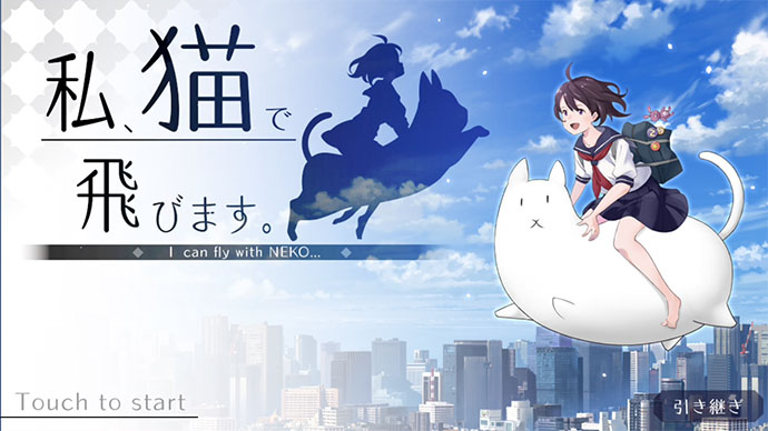 女子高生は、空飛ぶ巫女だよ〜!茄子をぶつけて穢れをはらう、爽快で楽しいタップゲーム「私、猫で飛びます。」無料♪