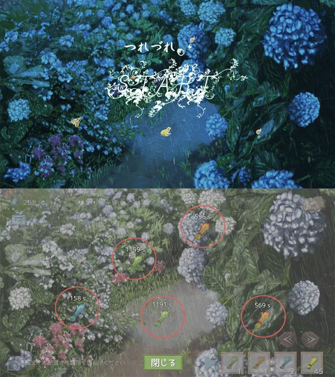 雨が降る森でいきもの達を見つける放置ゲームだよ〜