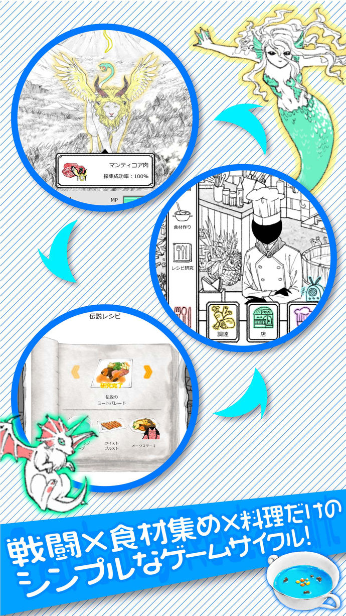 主人公は、小さなレストランを経営していて、モンスターの討伐から、料理のレシピ開発、レストラン営業まで、全てを担当するよ。