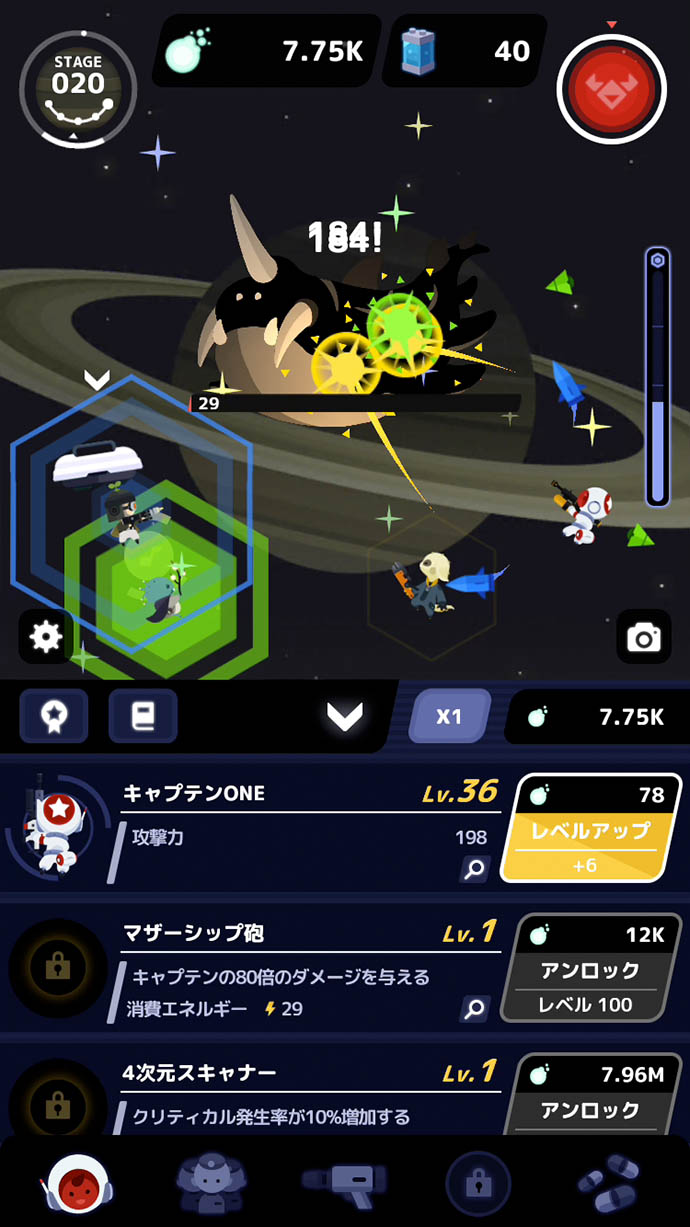 「StarONE : Origins」は、宇宙船に乗って、一緒に闘う仲間を増やしながら、未知の敵と戦う放置型ゲームだよ〜*