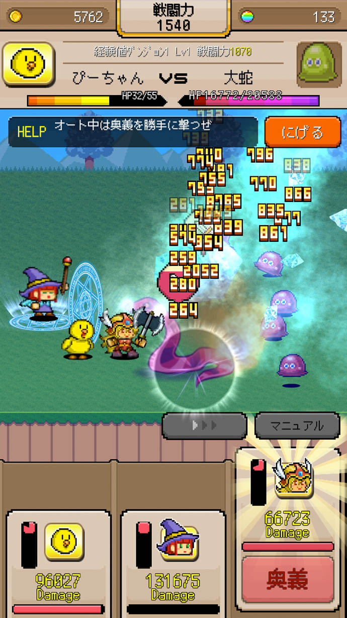 ボス戦だけは「自動」or「手動」を選べて、プレイヤーが手動で戦うこともできるよ〜