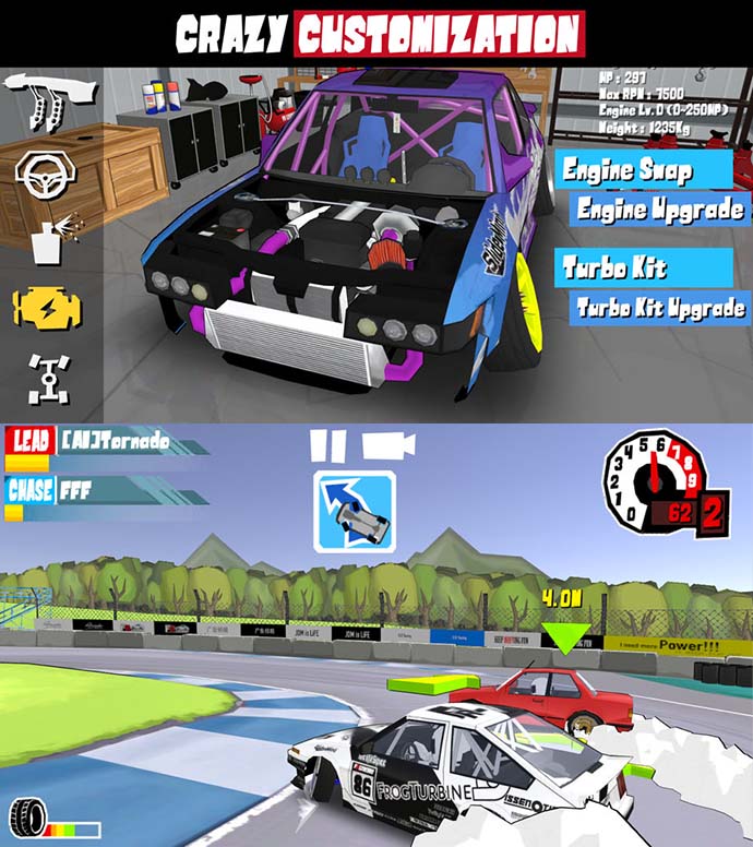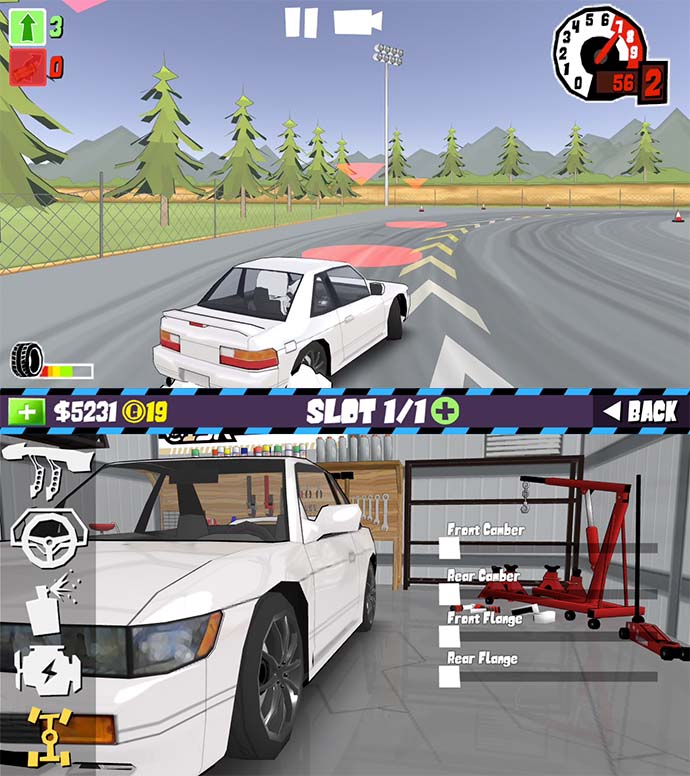 実在する車に近い車種だったり、カスタマイズが豊富、新しいコースを解放できるなど、ドリフト好きにはたまらない、やりこみ要素があるよ〜