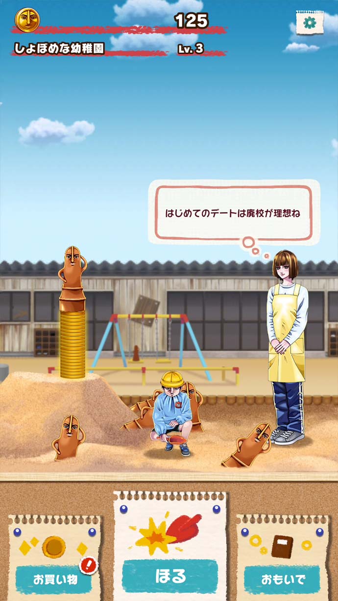 幼稚園児が地中深くに埋まるハニワを掘る、人気アクションゲームだよ〜
