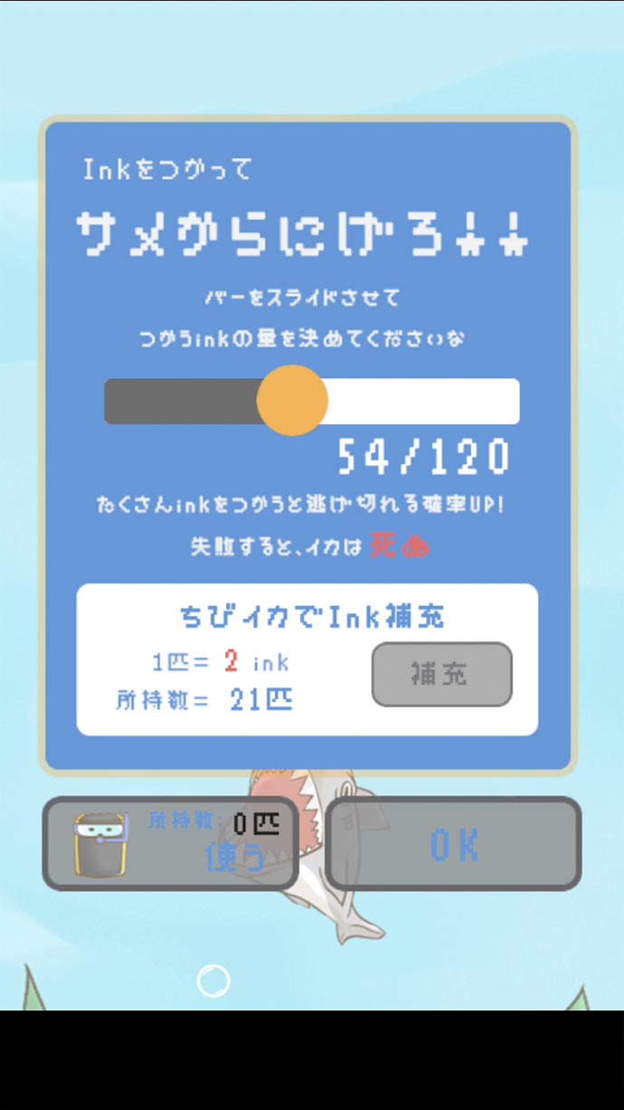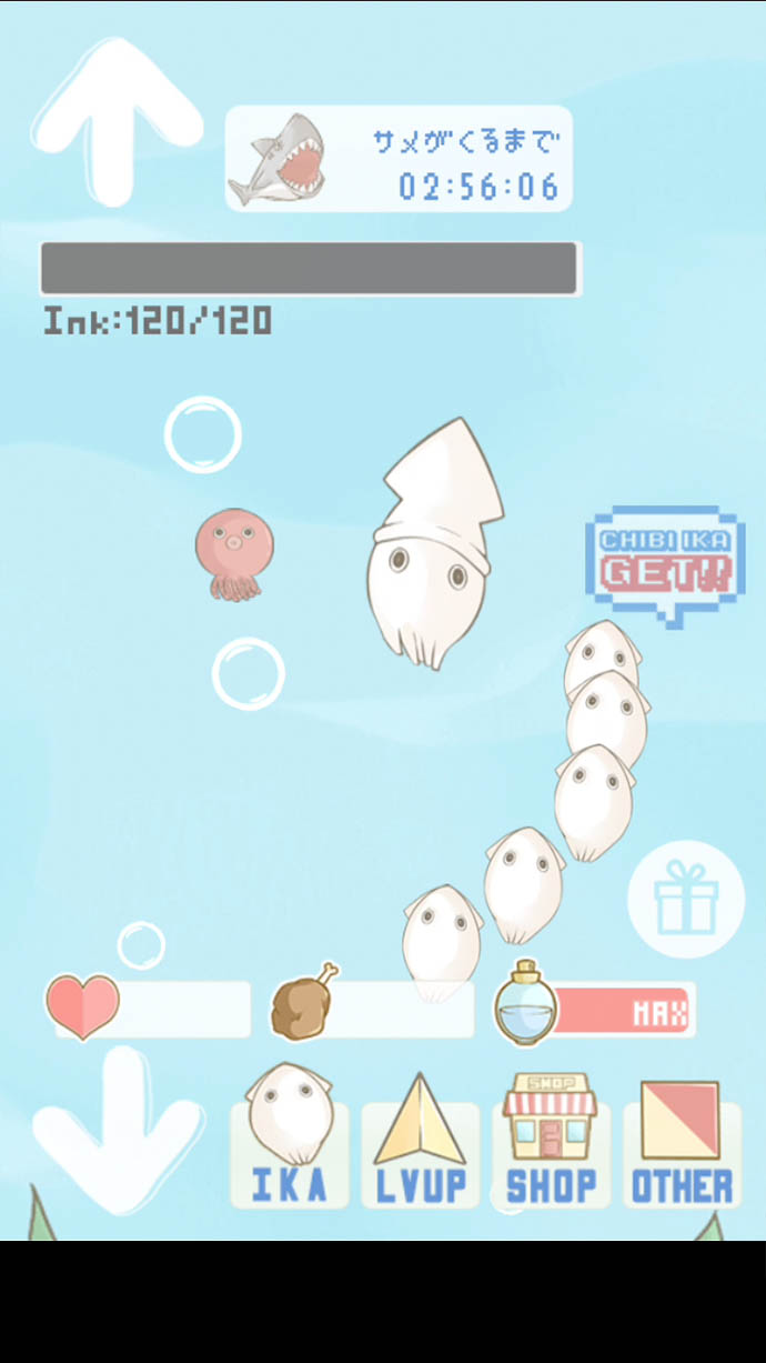 何度か逃げるのに成功すると、イカちゃんが進化(突然変異)するよ!
