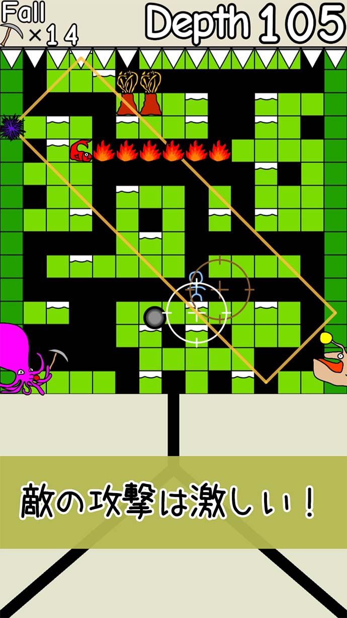 敵の攻撃を避けながら、ランダム生成マップを落下して、より深層部を目指すアクションゲームだよ〜