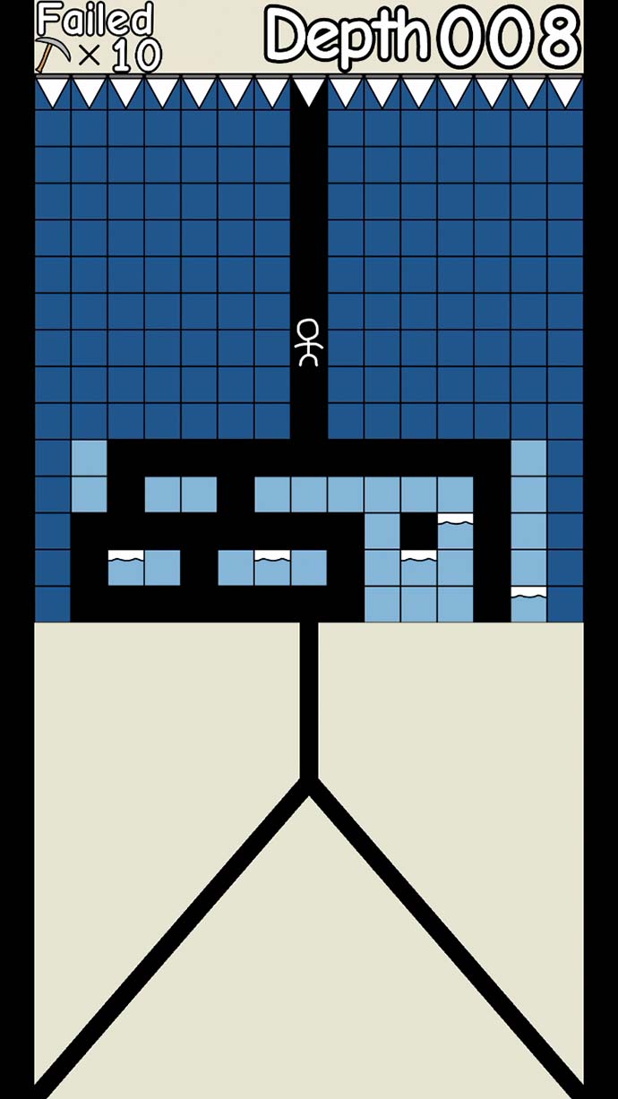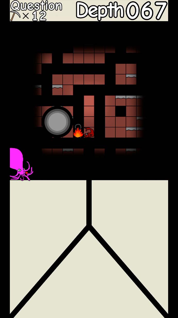 操作キャラは、ボタンをタップで “左右移動” と、”ピッケルで土を壊す” ことができるよ。