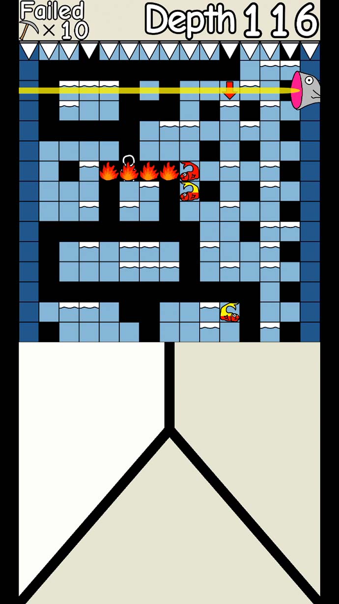 不用意にマップの一番下に行くと、生成したマップ次第でゲームオーバーになることがあるよ。