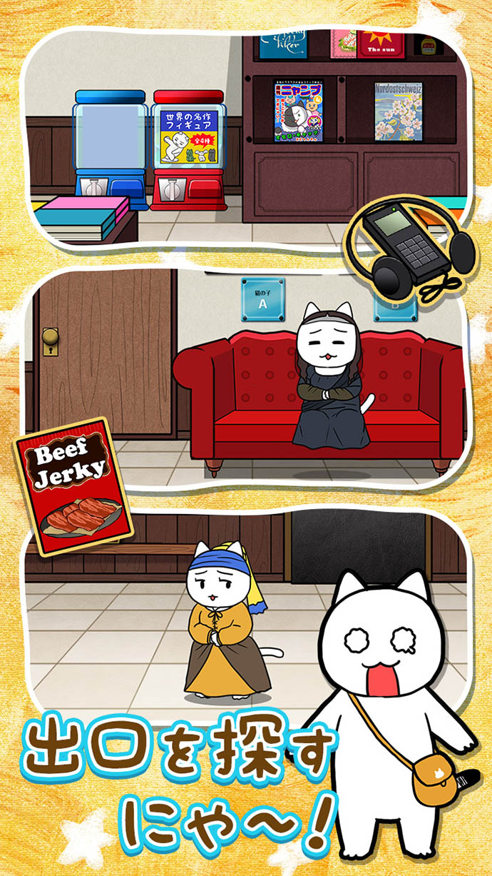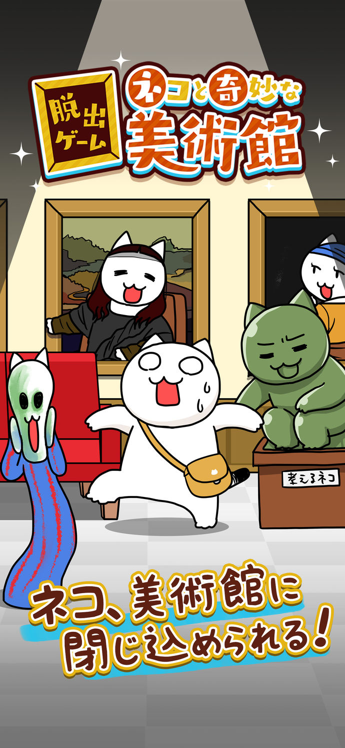 真夜中の美術館はネコだらけ!人気の白ネコ脱出シリーズは、今回も絶好調!楽しい漫画+謎解きの「脱出ゲーム ネコと奇妙な美術館」無料♪