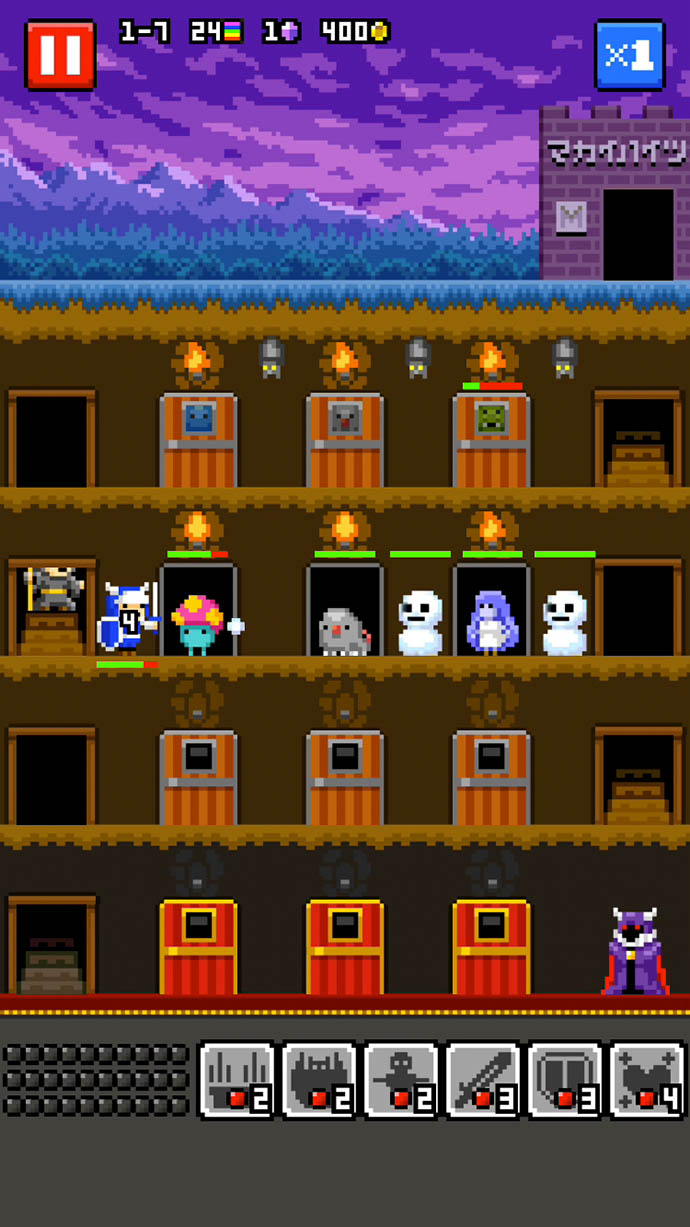 魔王が住むアパートに攻めて来る侵入者たちと戦う、タワーディフェンスゲームだよ〜