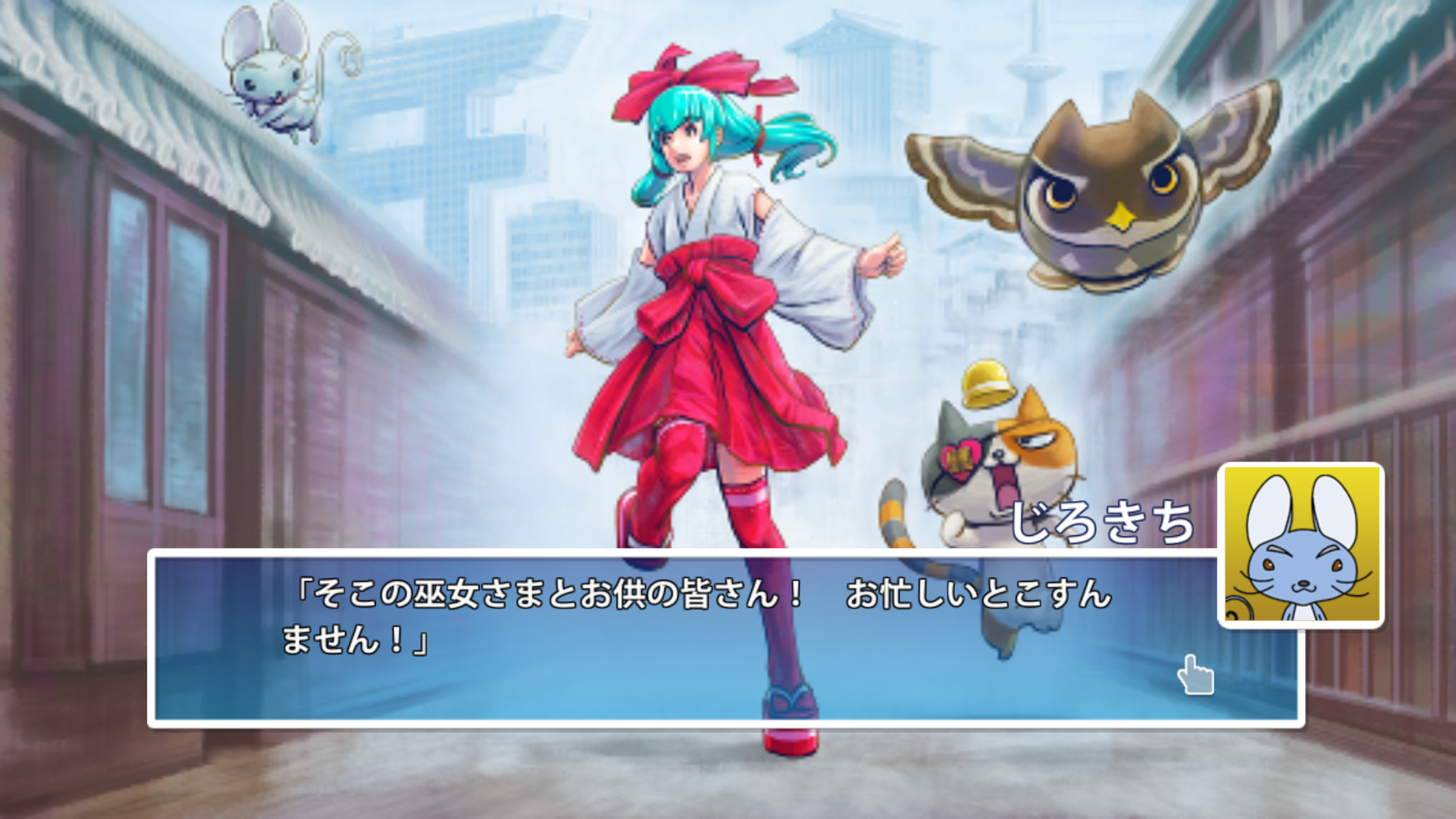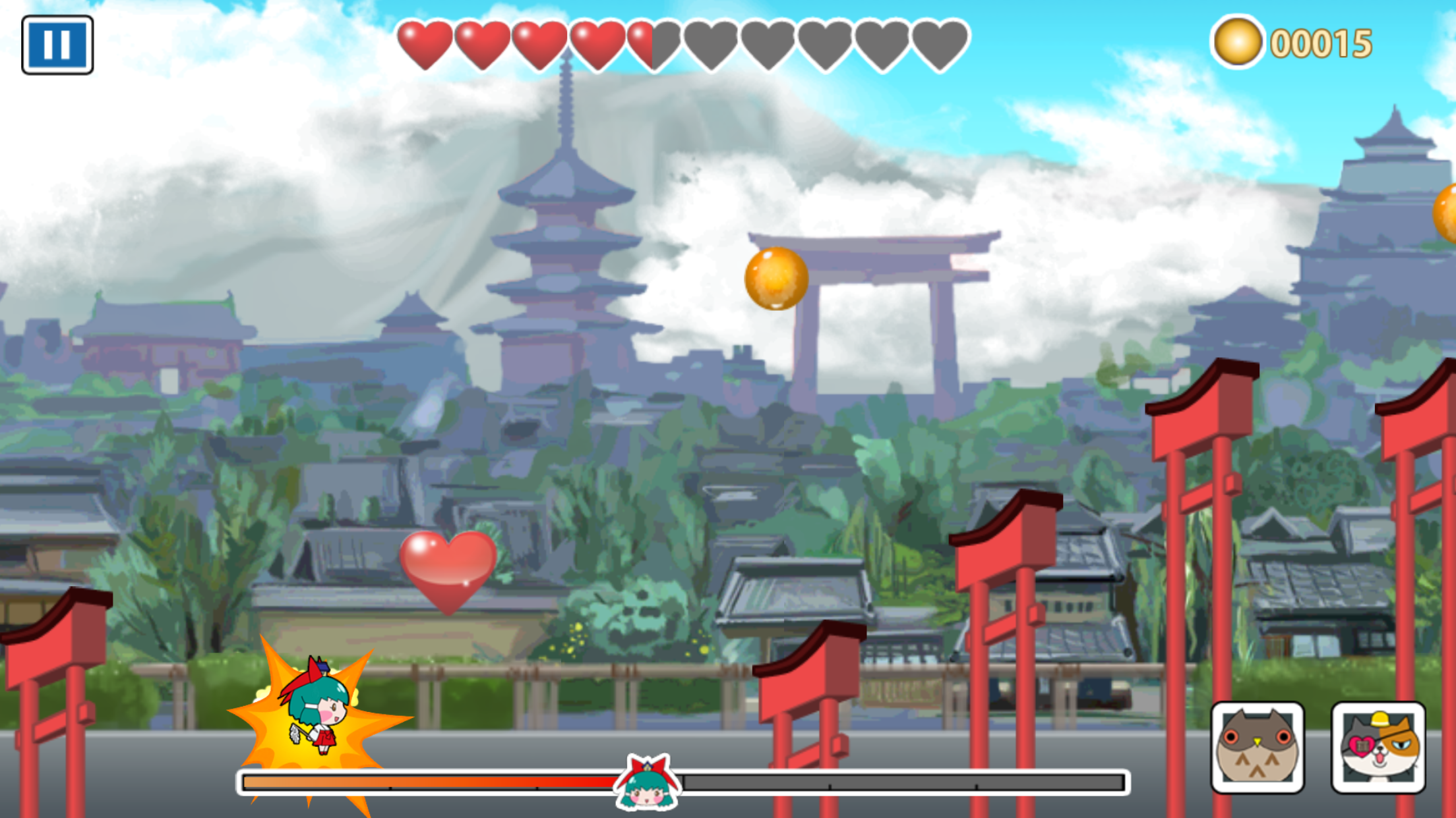 かわいい巫女のみらいちゃんをジャンプさせて、2分間のステージを、気軽に爽快に飛んで進んで行くよ!
