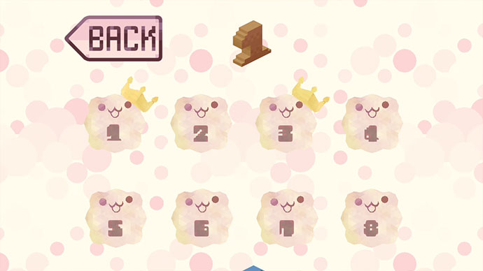各ステージは、移動回数、ストッパーの使用数などの条件で、3つ星評価されて、3つ星だと王冠がつくよ〜