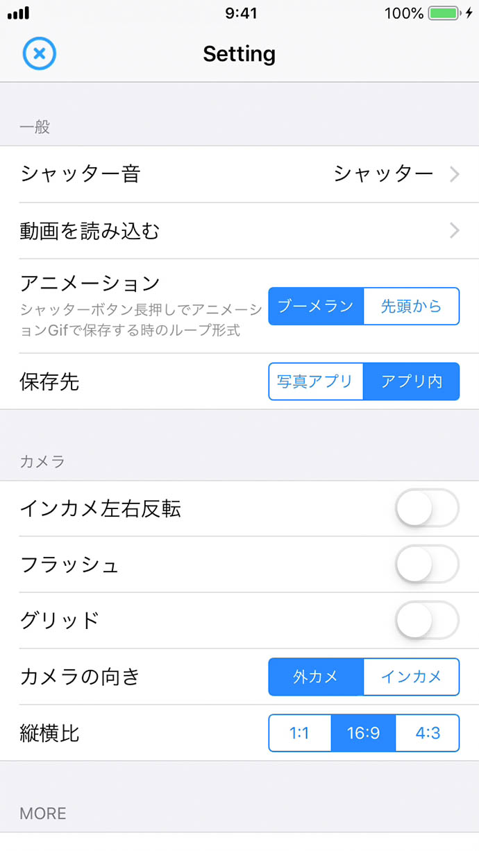 シャッターボタンの長押しでアニメーションgif(ブーメラン)でも撮影可能だよ〜