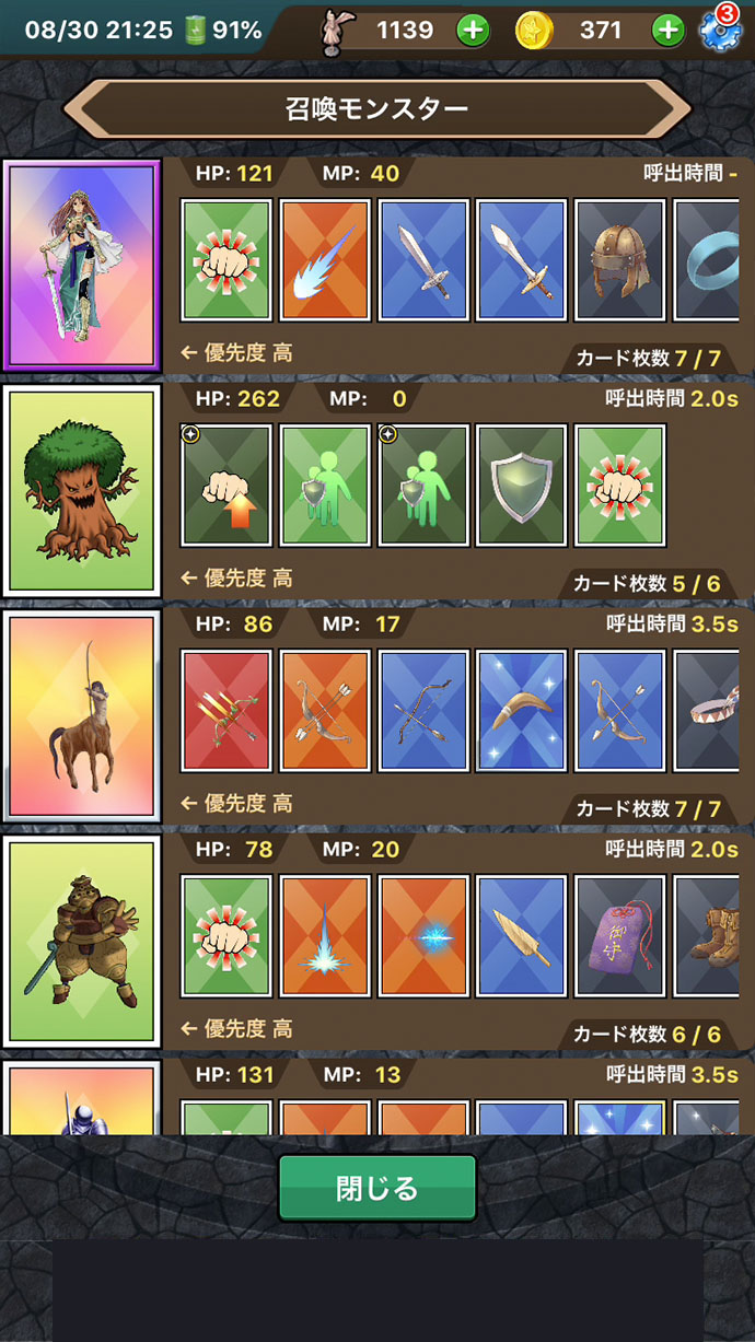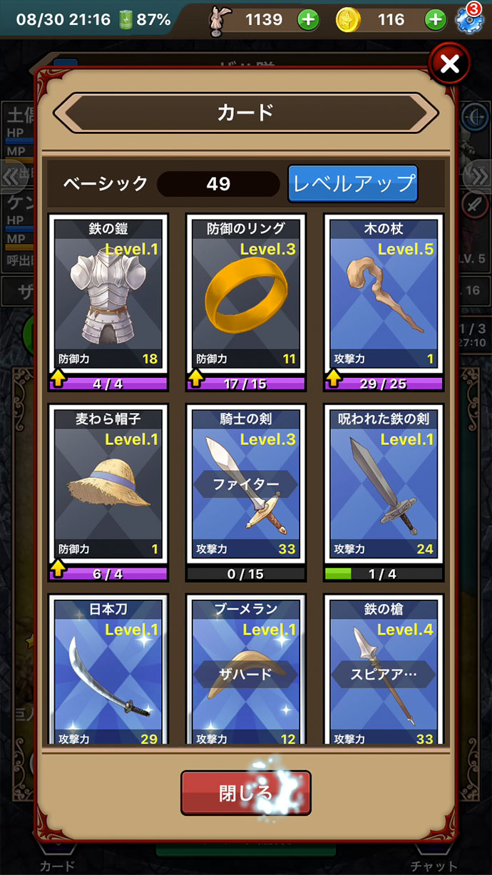 同じ種類のカードは合成してレベルアップもできるよ〜