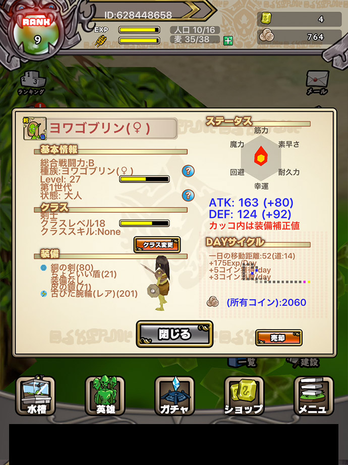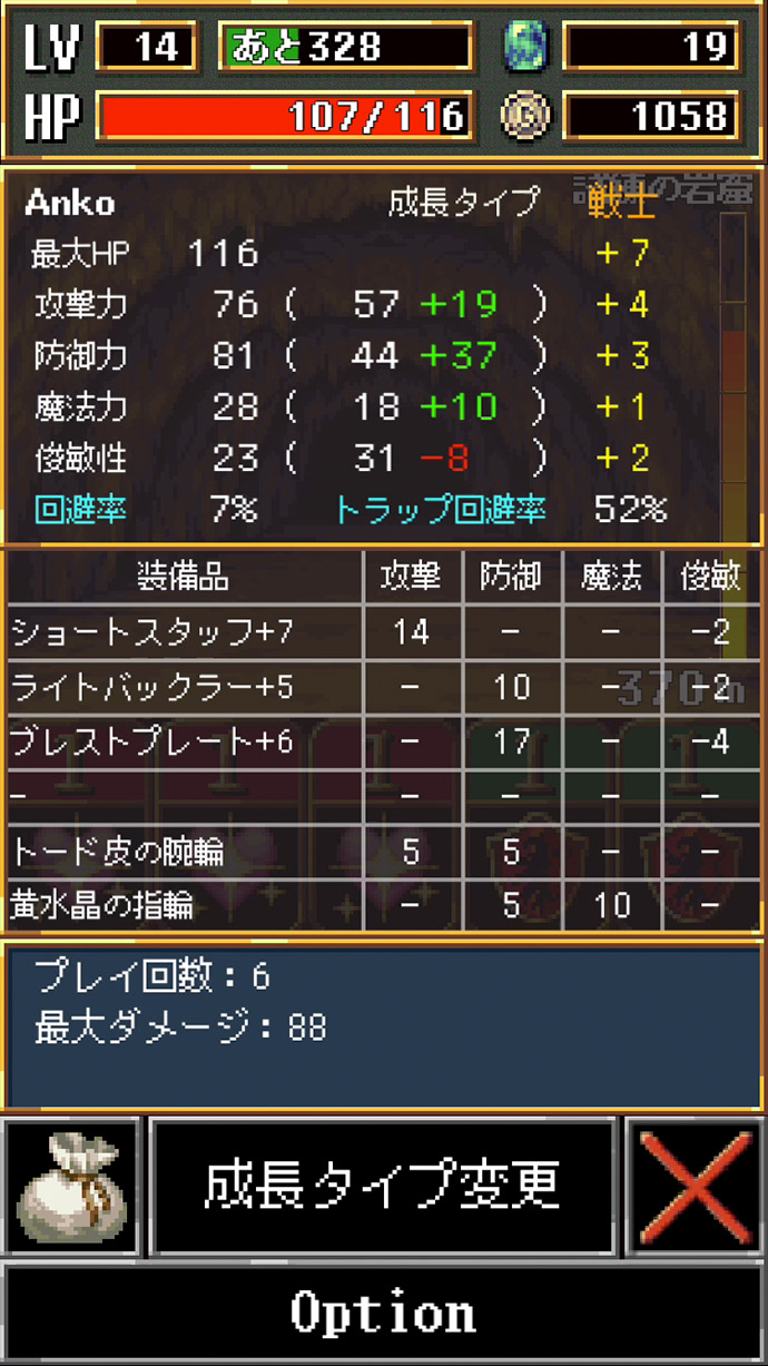 どんどん続けて遊べるから、あんこは忘れがちになるけど、「職業」の変更をして、主人公のステータスを自分好みに成長させることができるよ〜