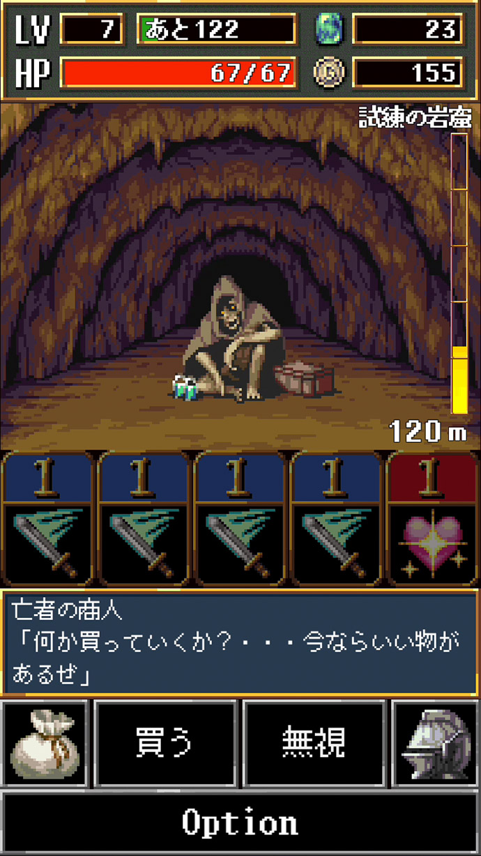 敵モンスターばかりではなくて、装備やアイテムを売り買いしてくれる商人や、その他にも怪しい出会いがあるよ〜