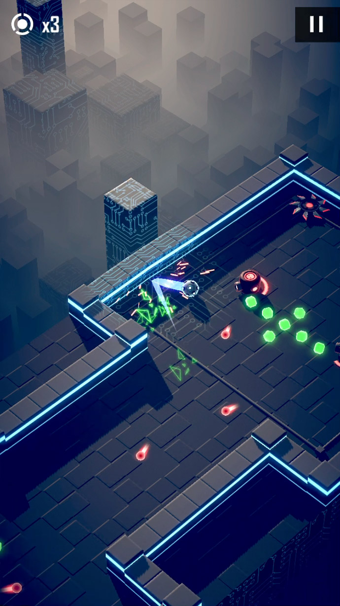 無機質な世界は、アクションを起こすと鮮やかな光線が行き交って、綺麗だよ〜