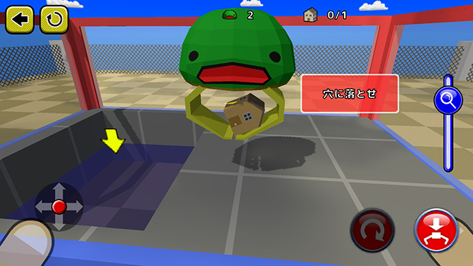 こんなふうにいろいろ工夫しながら建物をゲットしていく楽しいクレーンゲームだよ。