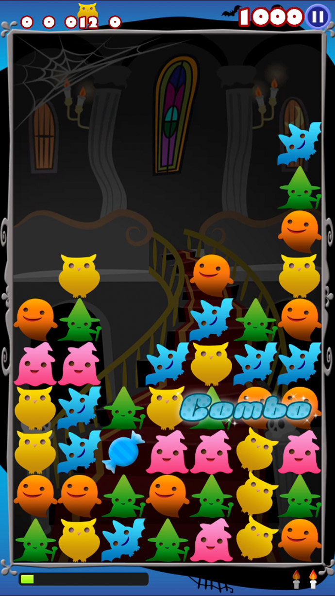 キャンディを消すと、同色のお化けが全て消せて、爽快だね!
