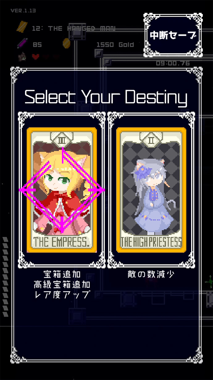 例えば、敵の数を少なくするより高級な宝箱がほしいとか、自分の得になるカードを選ぶよ〜