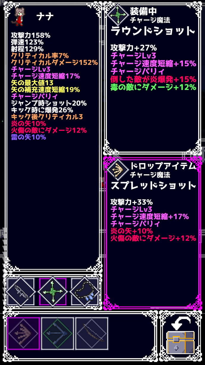 ゲットした装備の性能欄を見たら、すごく種類が多彩だね!