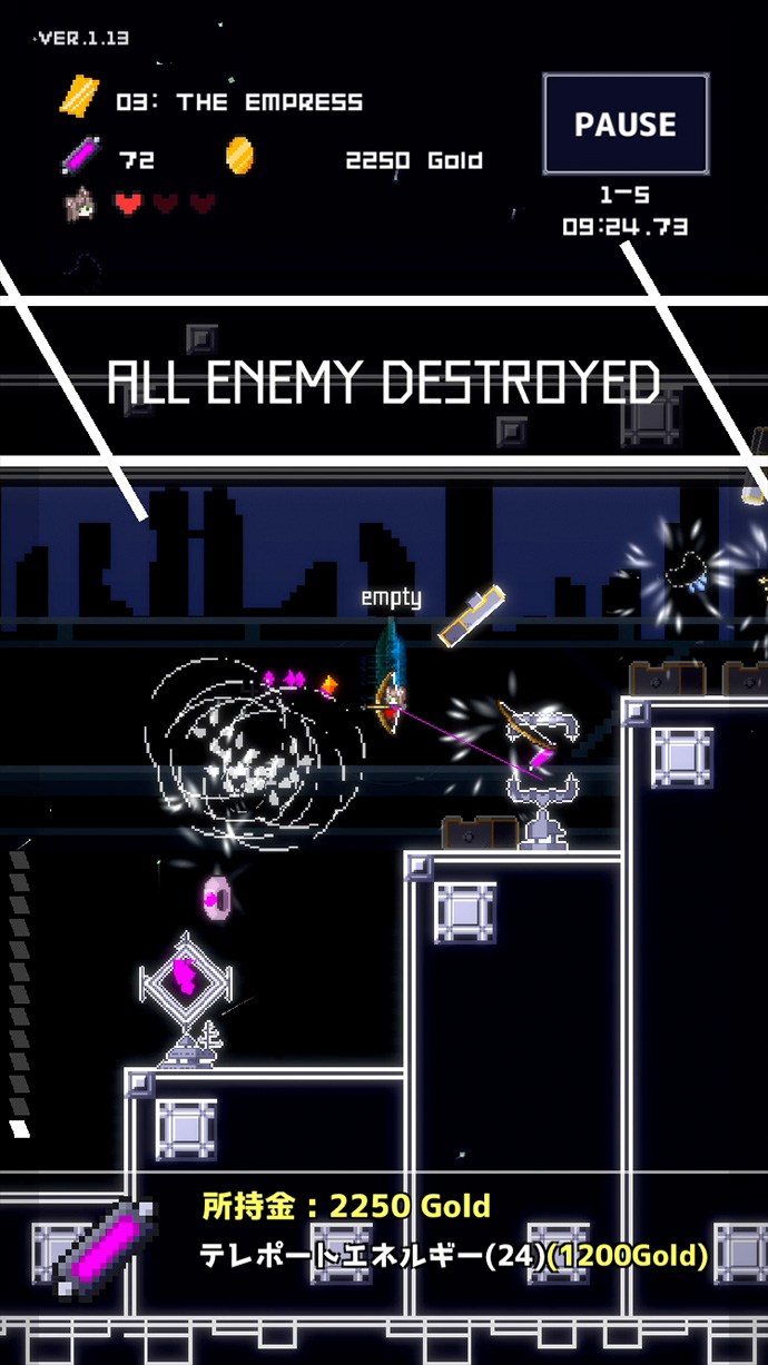 ランダム生成されるフィールド内の敵を全て倒すと、次のフィールド(ステージ)にワープできるよ〜