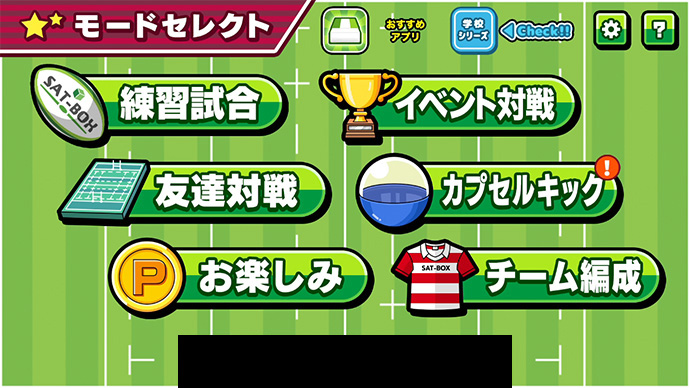 システムも充実していて、アイテムガチャ、選手のパラメータ調整、アスレチックトライなど、お楽しみがたくさんあるよ。