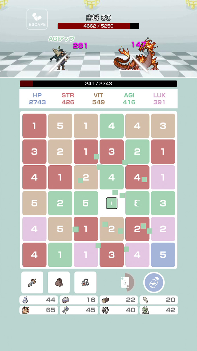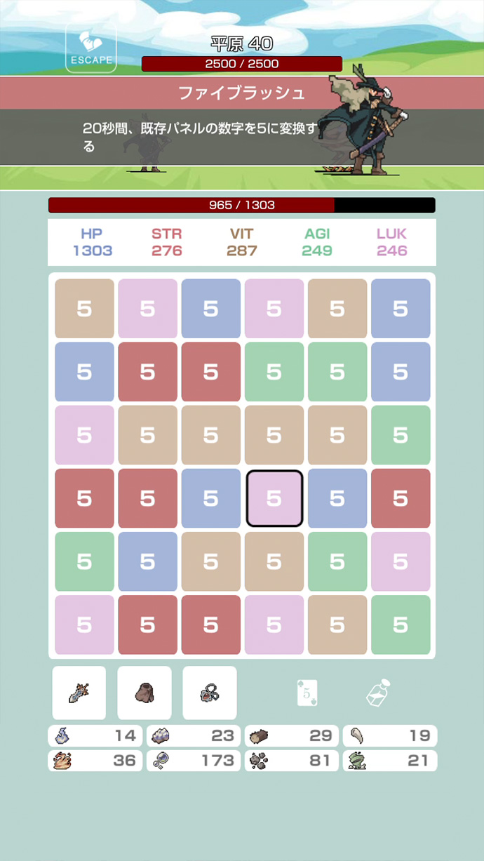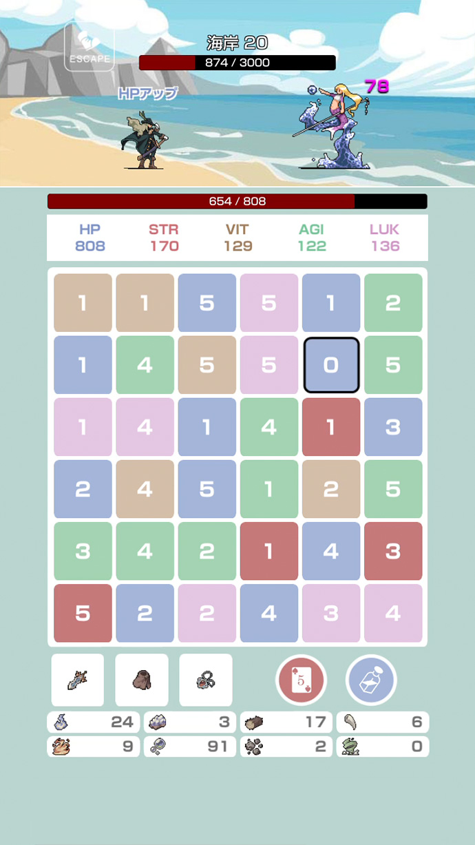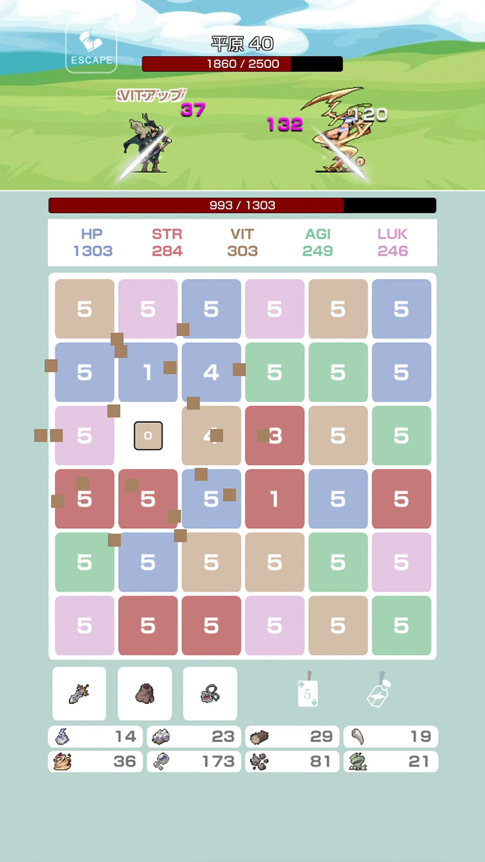 パネルの数字を足して10を作り、キャラクターを成長させる、パズルバトルゲームだよ〜