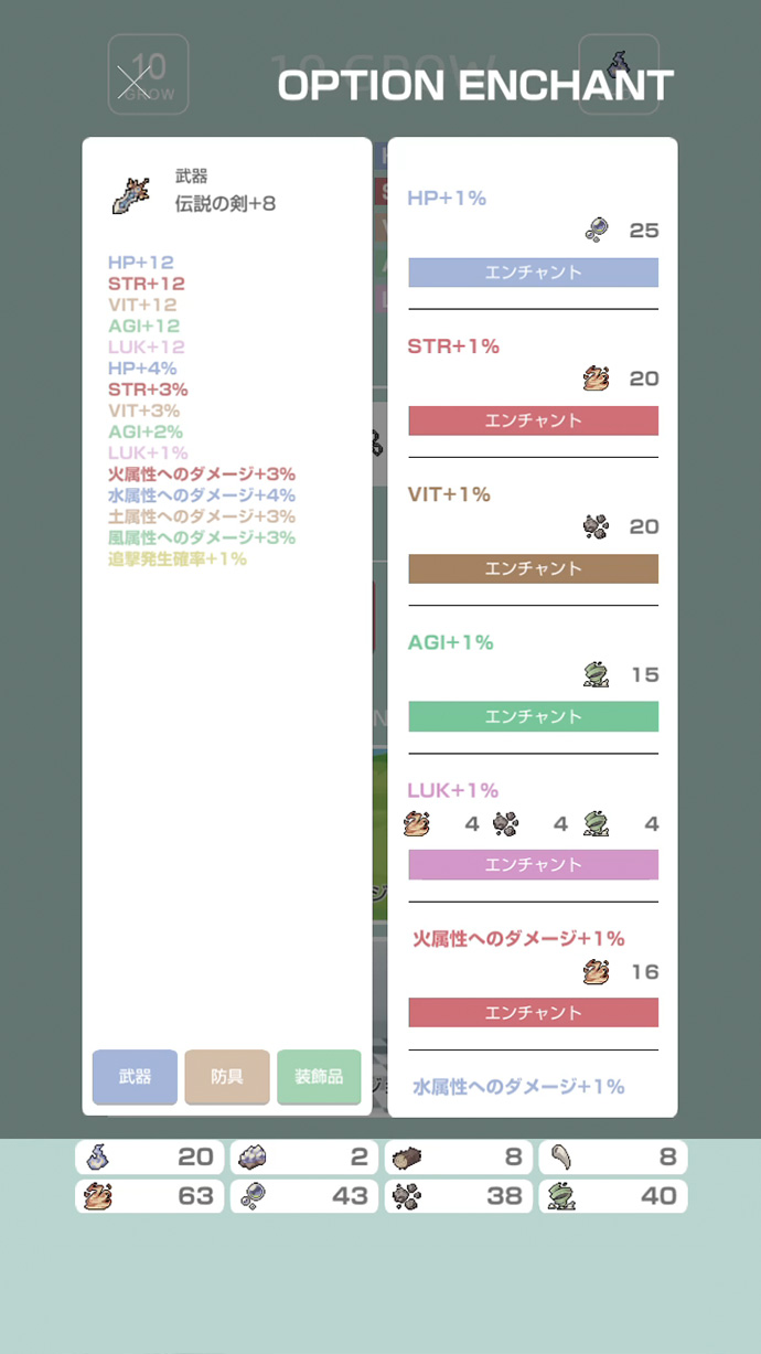 装備は、基本強化とは別に「オプション エンチャント」(追加効果) ができるよ。