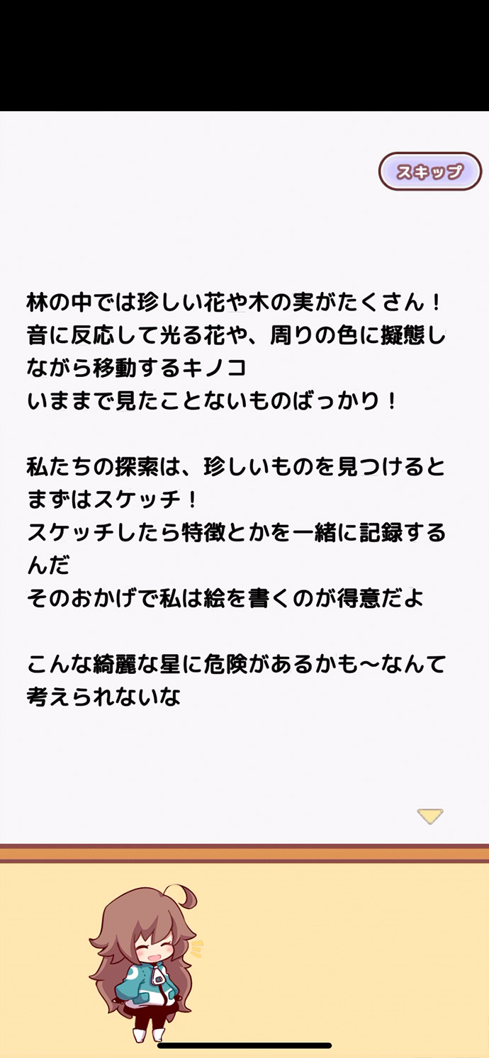 宇宙船のトラブルで、誰も知らない未開拓の星に不時着した2人の探索を、会話や日誌形式で楽しめるよ〜!