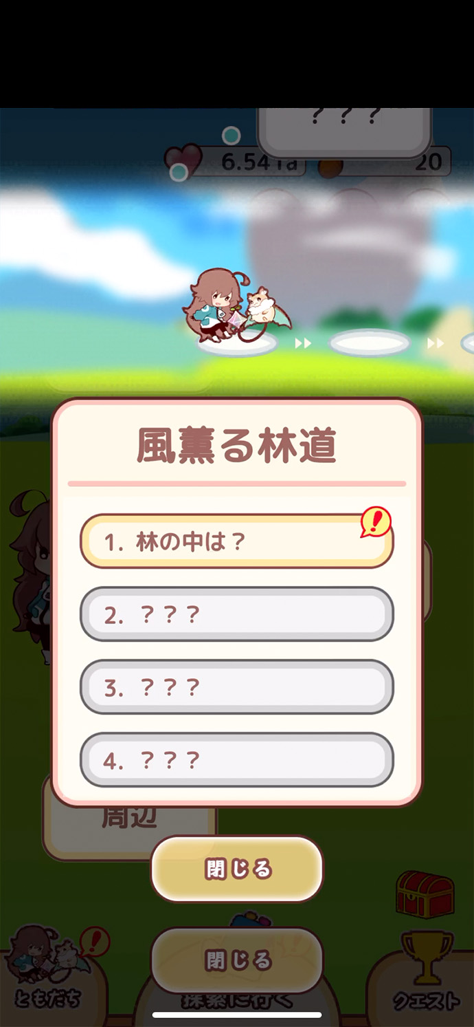 このゲームは、放置やタップで集めた “ハート” を消費して、ノベルを章ごとに開放し、読み進める=探索を進めるよ。