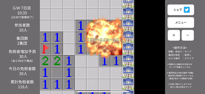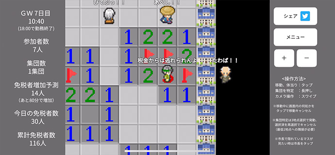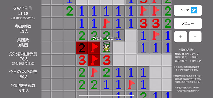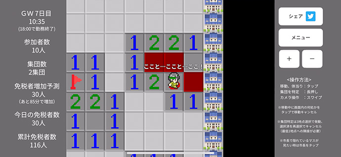マインスイーパーで、市長vs市民が本気のかくれんぼ!逃げ切れれば免税だよ!?市長になって隠れた納税者を見つける、ユニークで楽しいパズルゲーム「ハイド&スイープ」無料♪