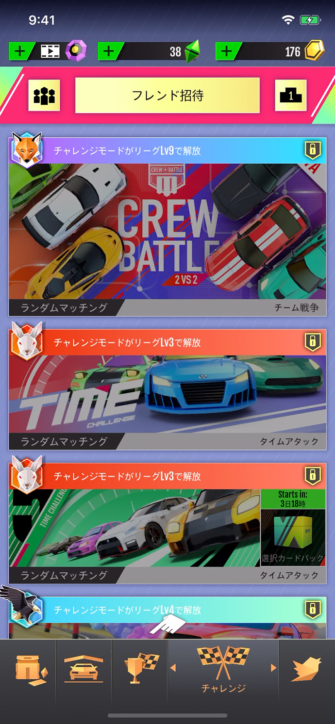レベルが上がると、チャレンジモードも遊べるようになるよ〜