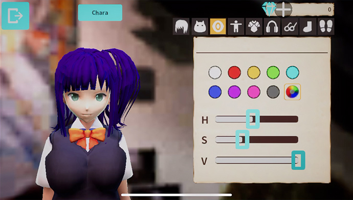 プレイヤーは、自分好みの女子高生アバターを作って、3D世界を自由に歩き回れるよ。