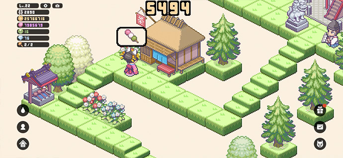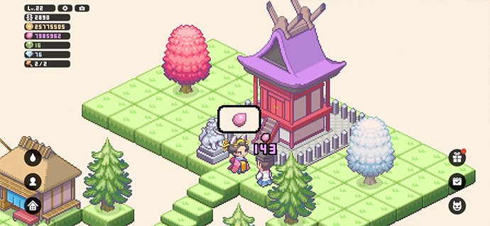 箱庭世界で神社を造るよ〜!自由に造って、参拝者を眺めたり、祟り神を撃退したり!ドット絵の楽しい放置型箱庭ゲーム「箱庭神社 – JINJA」無料♪